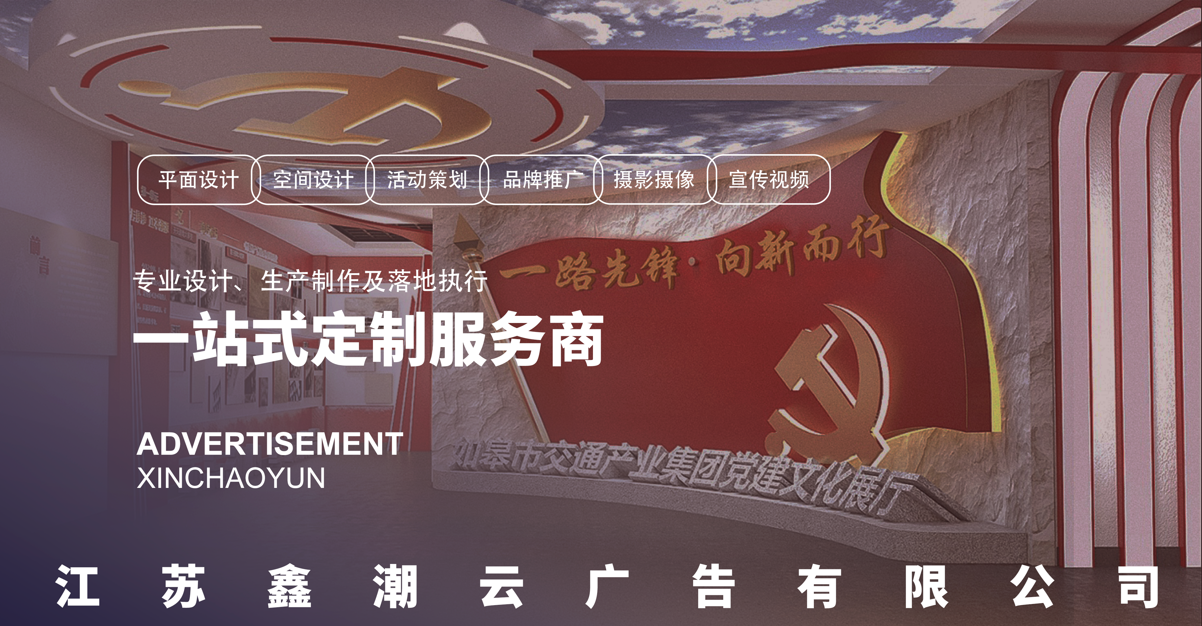 江苏鑫潮云广告有限公司为Ebpay首家实体化运作的全资子公司。为更好地适应市场需求,做强企业,现在,公司主业正在加快由资源类广告向设计策划、装饰装修转型,拥有专业平面、三维设计团队和房产策划、文旅策划团队10余人,设计团队、视频团队能力强。承接了附开小校园文化、长江镇社区党建馆等各类党建、展馆项目超10个。