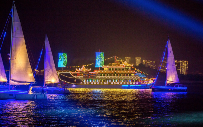 肃穆典雅的游船配备着先进的音响灯光设施,碧海蓝天的自然景观映衬着丝路文化的精神。在永乐01号上,古典与现代、自然与人文完美融合,为凝重的会议带来激情与活力,为热烈的庆典奉上酣畅淋漓。永乐01号,为团队活动、海上欢聚给予一场不一样的活动体验!