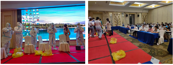 经过专业培训,现场分组模拟全流程,三亚旅文集团核酸采样应急队的队员们已经熟练掌握系统使用、信息录入、扫码封箱等关键环节,确保高效召开全员核酸检测工作。