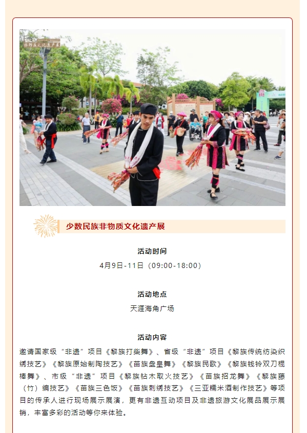 上一篇:2024年中华龙狮大赛(三亚站)即将开赛!点击获取免费门票~ 下一篇:“三月三”剧透!天涯海角邀您共庆黎苗传统节日,体验民族文化奇旅! < 返回列表