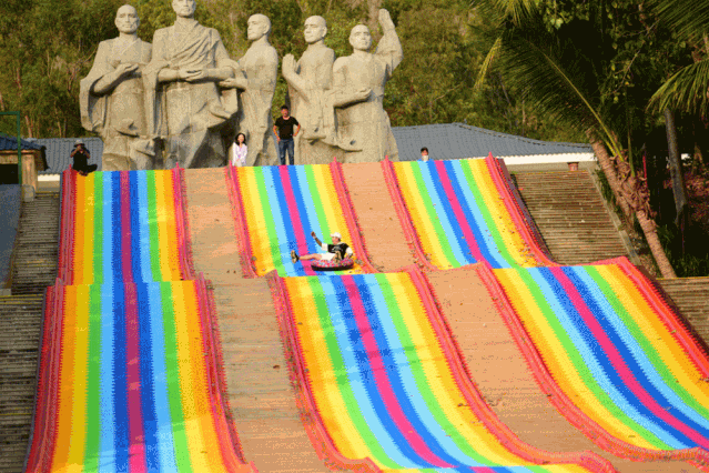 “彩虹滑道”坐落于景区鉴真登岸群雕下方,