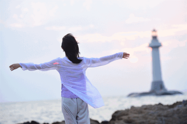 大海,沙滩,礁石,灯塔,拍婚纱的情侣,